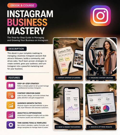 Turn your Instagram into a powerful business tool with this step-by-step guide designed for entrepreneurs, small business owners, and creators. This ebook teaches you how to build a strong brand presence, create engaging content, attract the right audience, and convert followers into paying customers. Whether you're starting from scratch or looking to scale your existing account, you'll discover proven strategies used by successful businesses to grow faster and smarter on Instagram. From content planning to analytics, this guide covers everything you need to confidently manage and grow your business online.